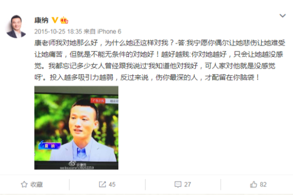 挽回爱情的错误心理——受害者心理2016-05-03 72两人相处避免不了产生矛盾,如果矛盾没能化解,积压和残留在彼此的心里,那么人的潜意识里就会生层一种抱怨的心态,并且还会认为自己没有错。我们了解到,人往往会合理化自己自己的行为,把自己定位在错误较少的角色里。这也就是为什么,你自己已经变成了一个怨妇,却还不知的原因。分手前你是不是曾感到很伤心?认为自己是一个受害者,想着:都是他的错,他对你不够好,他不够体贴,他达不到你的预期,他又怎么怎么了,他怎么可以这样?那么,没错,他离开你是对的。试着换位思考一下,如果你作为一个男人,承受着男人责任的同时,还要与一位...