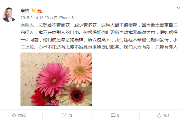 挽回爱情中的三大误区2016-06-06 77像我们不时能看到男子跪求女友回心转意,惨遭怒打后离去的事件一样。许多人都没能正确意识到分手这个词的含义,更是没能正确的理解好挽回的定义,盲目的以为像平常吵架一样,哄哄表态就好了。 所以才会有许多人在遭遇被分手之后,总是会过于心急,情绪大于理智,听不进别人的劝告,听不懂对方的当下之意,而只会表态表态再表态,而做出很多后悔莫及,让人唏嘘不已的的行为。 就像情感专家康纳先生说的一样,挽回不是补救,而是二次吸引。不停地在做对的事情的事,这就叫挽回;如果你不停...